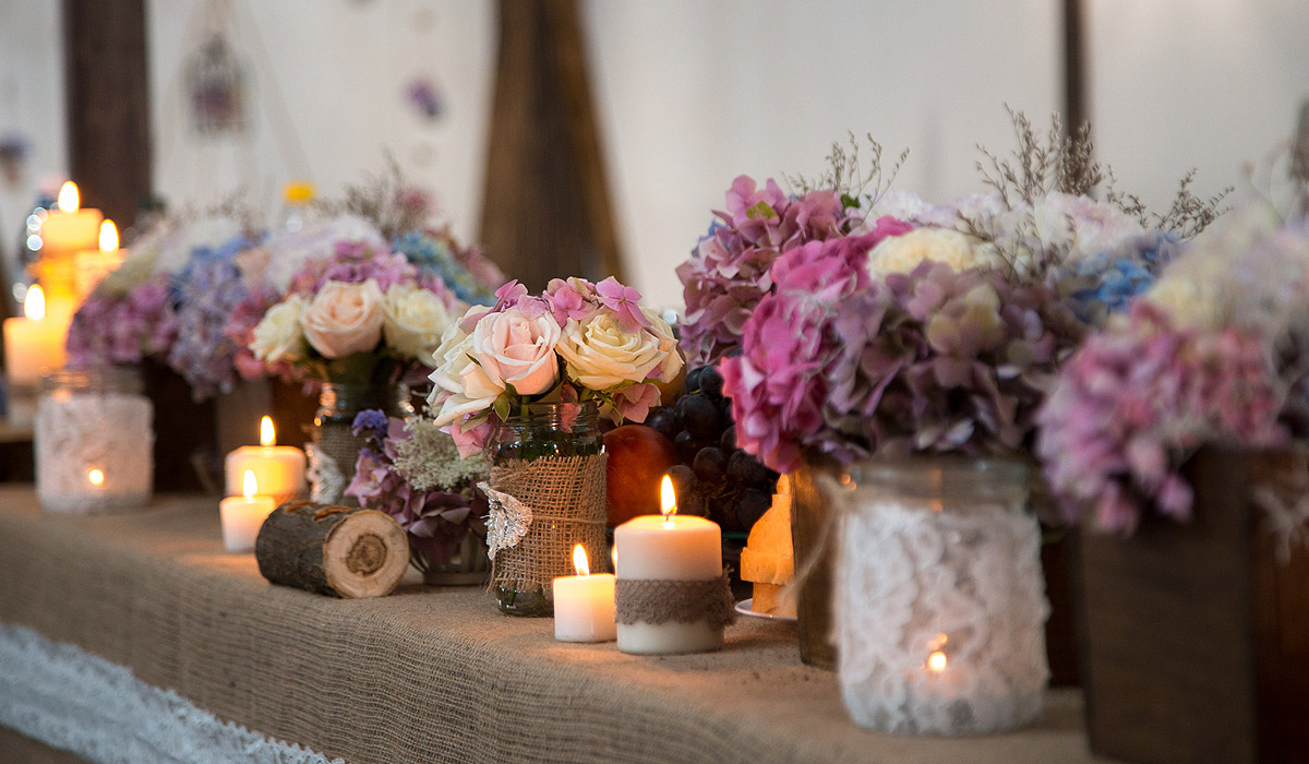 Von den Tischkarten bis hin zur Beleuchtung, von uns bekommen Sie ein aufeinander abgestimmtes Dekorationskonzept für Ihren besonderen Tag.